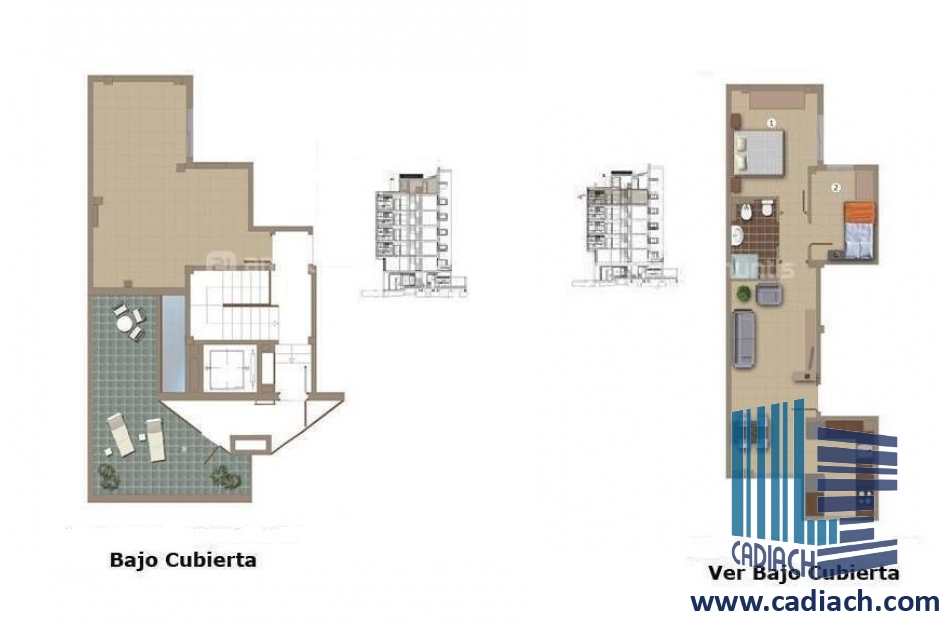 Ultimo piso con posibilidades de convertir en dúplex, ahora mismo es un piso de dos habitaciónes, baño salón y cocina independiente con una terraza superior de 17m y un gran trastero de 26m, el cual podríamos conectar tipo dúplex con el piso.